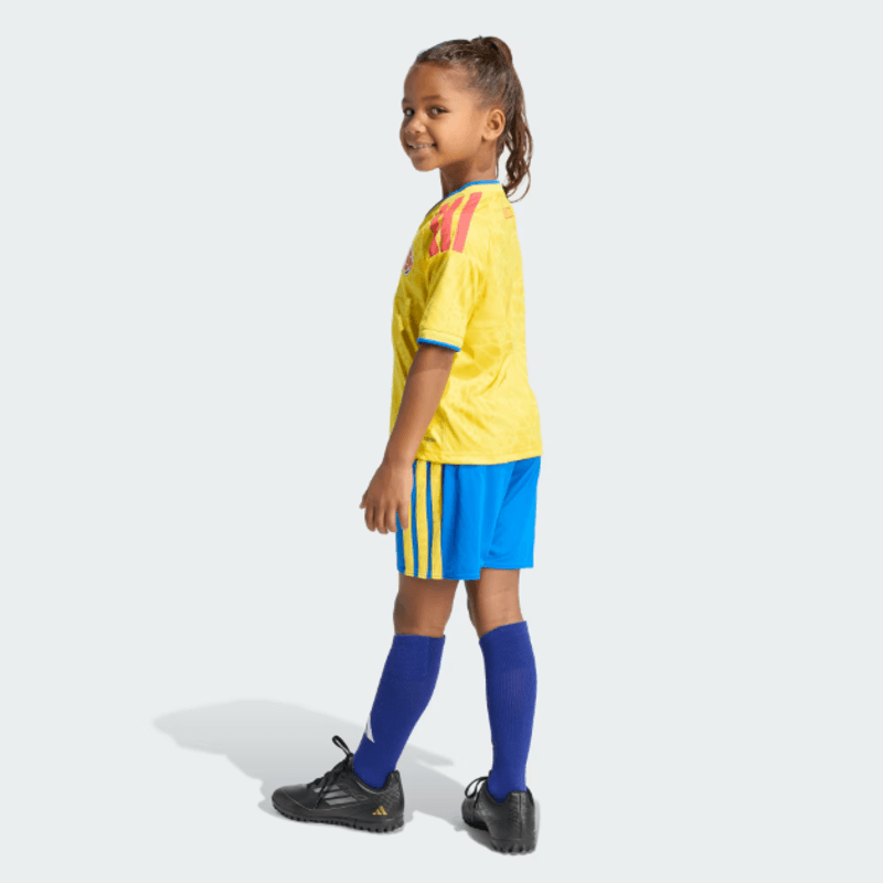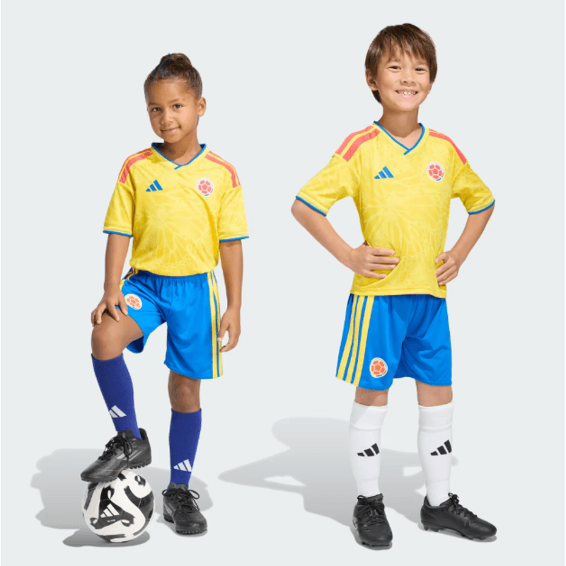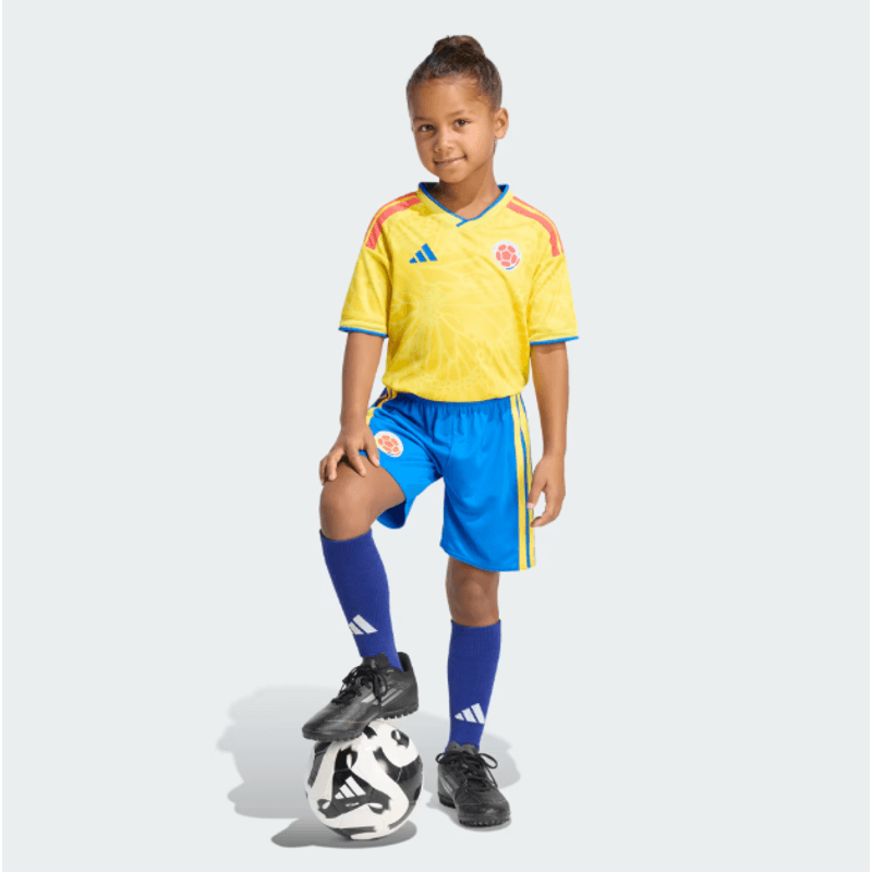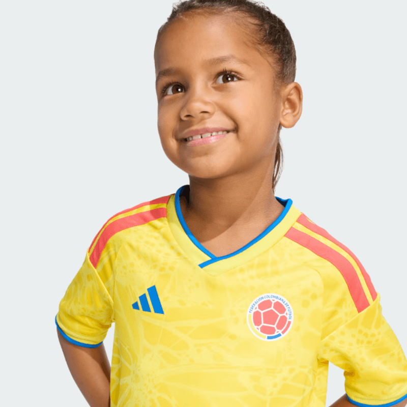 El conjunto local de la Selección Colombia 26 aporta un estilo expresivo a los jóvenes aficionados con un diseño arraigado en la identidad nacional. Los elementos gráficos reflejan el movimiento, el ritmo y la energía colombiana, llenos de color y significado.